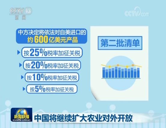 到目前為止,我國公布了兩批對自美進口商品加征關(guān)稅清單。第一批清單,中方發(fā)布公告對美國500億美元商品加征25%的關(guān)稅,共涉及517項農(nóng)產(chǎn)品。第二批清單,中方?jīng)Q定將依法對自美進口的約600億美元產(chǎn)品,按照25%、20%、10%、5%四檔不同稅率加征關(guān)稅,涉及387項農(nóng)產(chǎn)品。目前已對近九成自美進口農(nóng)產(chǎn)品加稅。