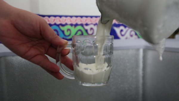 阿拉山口專營(yíng)駱駝奶店每天都會(huì)售出很多駝奶。 亞心網(wǎng)記者 呂伊晗 攝