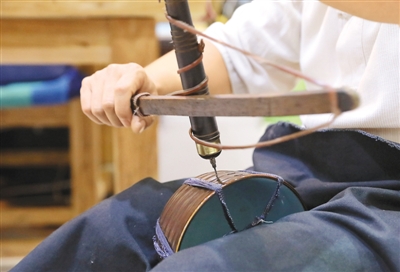 河北省非物質文化遺產項目代表性傳承人李軍航用金剛鉆為殘破瓷器打孔。梁子棟攝(新華社發)