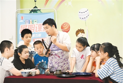 在石家莊市橋西區東華街道,李軍航在給孩子們上鋦瓷非遺課。陳其保攝(新華社發)