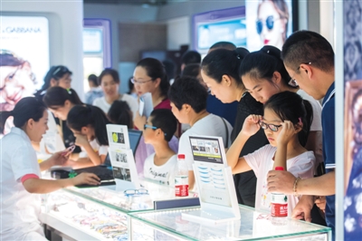 8月24日,太原市的山西省眼科醫院,暑假臨近尾聲,中小學生在家長的陪同下檢查視力,扎堆配眼鏡。圖/視覺中國
