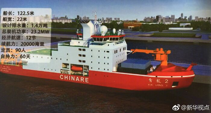 “雪龍2”號建造工程由自然資源部所屬中國極地研究中心組織實施,中國船舶工業集團第七〇八研究所設計、江南造船(集團)有限責任公司承擔建造,是一艘滿足無限航區要求、具備全球航行能力,能夠在極區大洋安全航行、具備國際先進水平的極地科學考察破冰船。