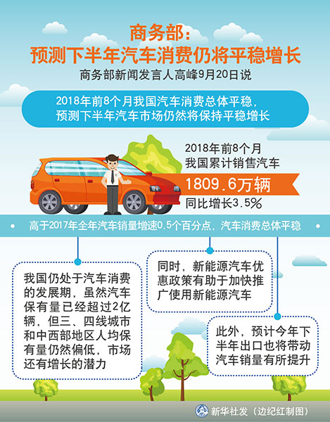 圖表:商務(wù)部:預(yù)測(cè)下半年汽車消費(fèi)仍將平穩(wěn)增長(zhǎng) 新華社發(fā) 邊紀(jì)紅 制圖