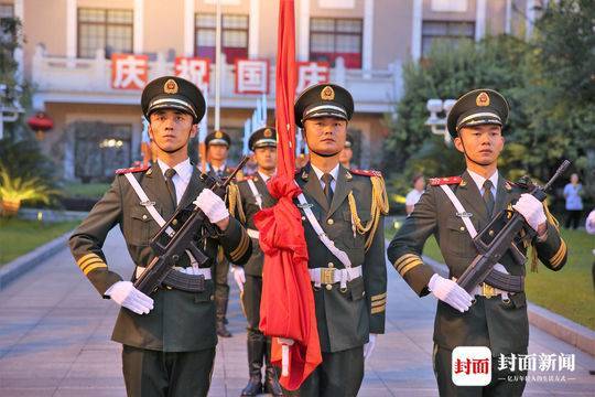 早上7點(diǎn),伴隨著莊嚴(yán)的國歌聲,五星紅旗冉冉上升,飄揚(yáng)在了成都天府廣場的上空。在眾多觀看升旗儀式的人群中,有一位女孩全程盯著國旗護(hù)衛(wèi)隊(duì)的第一排。