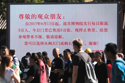 昨天是國慶假期第二天,也是故宮傳統的全年游覽高峰日。自2015年實行每日限流8萬人次以后,故宮游覽高峰不再體現在游客數量,而是體現在“搶票”的激烈程度上。早在9月30日上午,10月2日的故宮門票就在網上銷售一空。