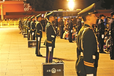 10月1日的前一天晚上,天安門地區(qū)支隊執(zhí)勤12中隊?wèi)?zhàn)士王帥吃過晚飯就去休息了,他知道,這又將是一個不平凡的夜晚。