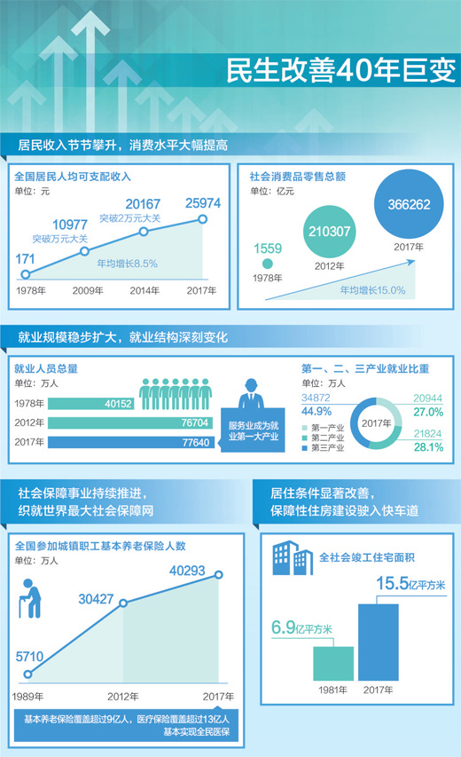 美好生活 全民共享(壯闊東方潮 奮進新時代—慶祝改革開放40年·數說)
