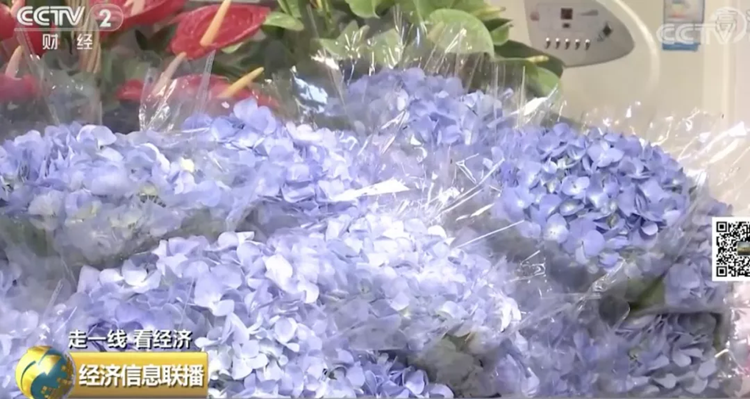 鮮花銷售商陳宗翔:進口的話,瓶插期不會超過一個星期,如果是國產,由于沒有長途的運輸,它可以插兩個星期到三個星期,現在客戶更愿意要國產的一些繡球。