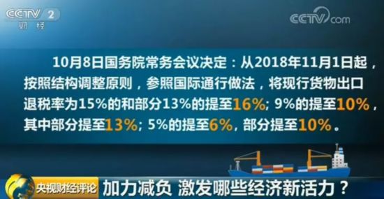財經評論員 萬喆:10月8日的國務院常務會提出完善出口退稅政策,加快出口退稅進度的措施,這實際上有助于企業轉型升級,同時優化企業的營商環境也是降低制度性成本。財政發力一方面是要降費減稅,另一方面方面希望提供更多更好的公共服務,第三是使整體的營商環境更加公開公平、更加透明,使得企業有更高的獲得感。在這個環境當中,只要企業有能力就愿意把活力和新動能都釋放出來,實際上財政政策和企業轉型都是追求高質量發展。