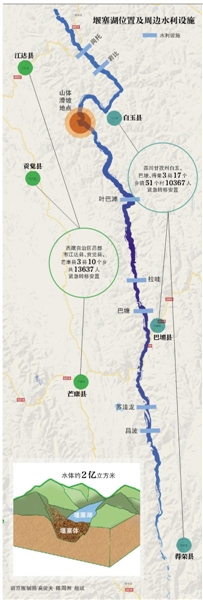 堰塞湖水體約2億立方米