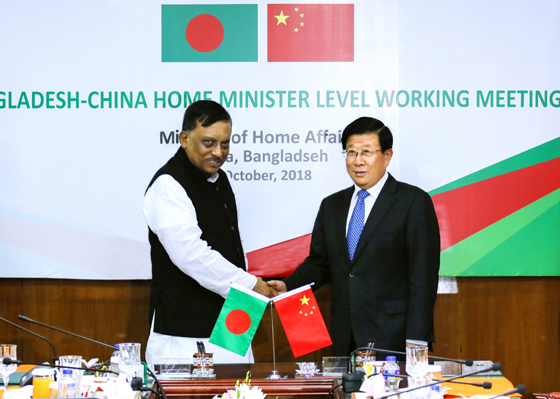 10月26日,國務(wù)委員、公安部部長趙克志在達卡與孟加拉國內(nèi)政部部長阿薩杜扎曼·汗舉行會談。