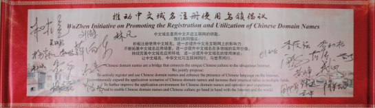 《推動(dòng)公文域名注冊(cè)使用烏鎮(zhèn)協(xié)議》簽名橫幅