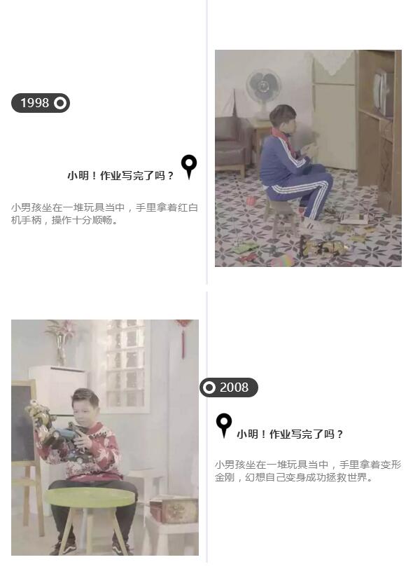 1998年上下,大批的90后“呱呱墜地”,人民生活水平正處在大踏步邁進(jìn)的前夕,插在電視上的“紅白機(jī)”成為了這一年代無法繞過的“重頭戲”。當(dāng)然,隨著生活水平的提高,玩具種類更加豐富,變形金剛、布娃娃、搖控小汽車、塑膠恐龍、變形蛋等都成為孩子們童年的好伴侶。