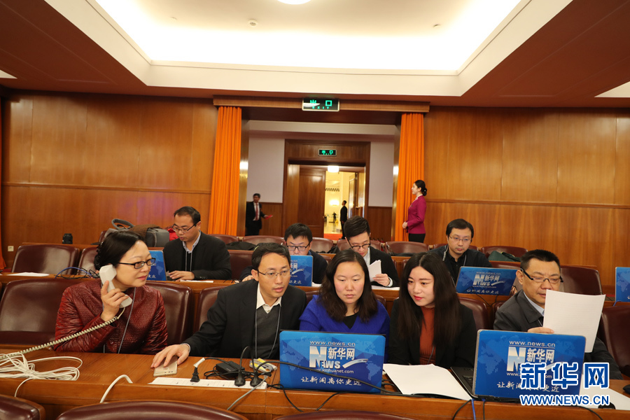 12月18日,慶祝改革開放40周年大會在北京人民大會堂隆重舉行。圖為新華網現場直播團隊。新華網記者 郭小天 攝