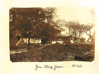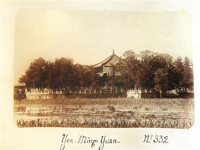 劉陽介紹,此次挖掘出來的這組照片最大價值在于,提供了許多已經被毀的圓明園建筑的原貌。“照片中拍攝了圓明園西部的幾座木構建筑,充分說明作者拍攝時,慎修思永大殿、課農軒、海岳開襟等建筑還沒有被毀。”