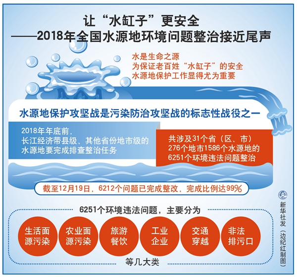 讓“水缸子”更安全——2018年全國水源地環境問題整治接近尾聲 新華社發 邊紀紅 制圖