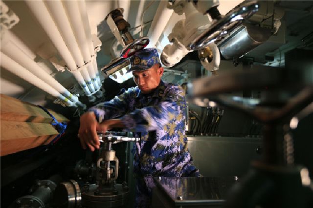↑任務中,肖海生在檢查AIP系統。