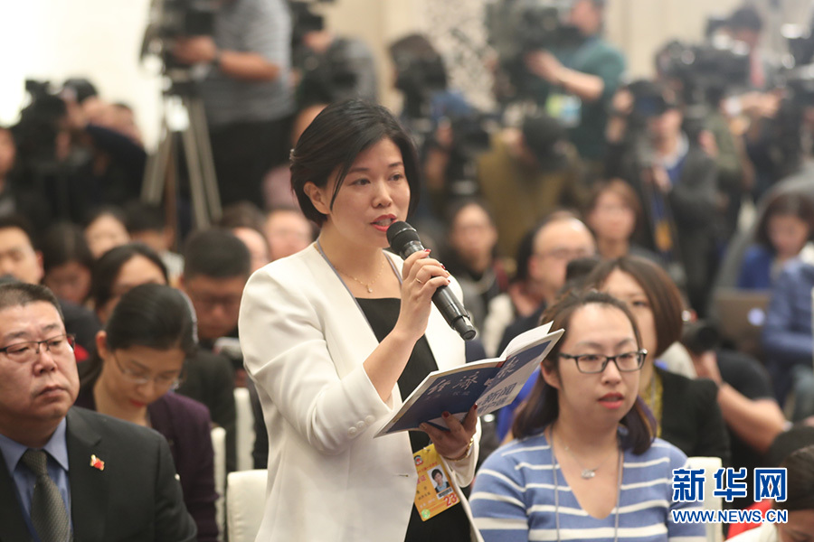 全國政協十三屆一次會議新聞發布會3月2日16:30在人民大會堂一層新聞發布廳召開,大會新聞發言人王國慶向中外媒體介紹本次大會有關情況并回答記者提問。圖為經濟日報記者提問。新華網/中國政府網 曲植 攝?