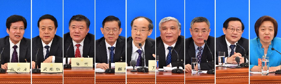 3月6日,全國政協十三屆一次會議在北京人民大會堂舉行記者會,民主黨派中央和全國工商聯領導人回答記者提問。 新華社記者 申宏 攝