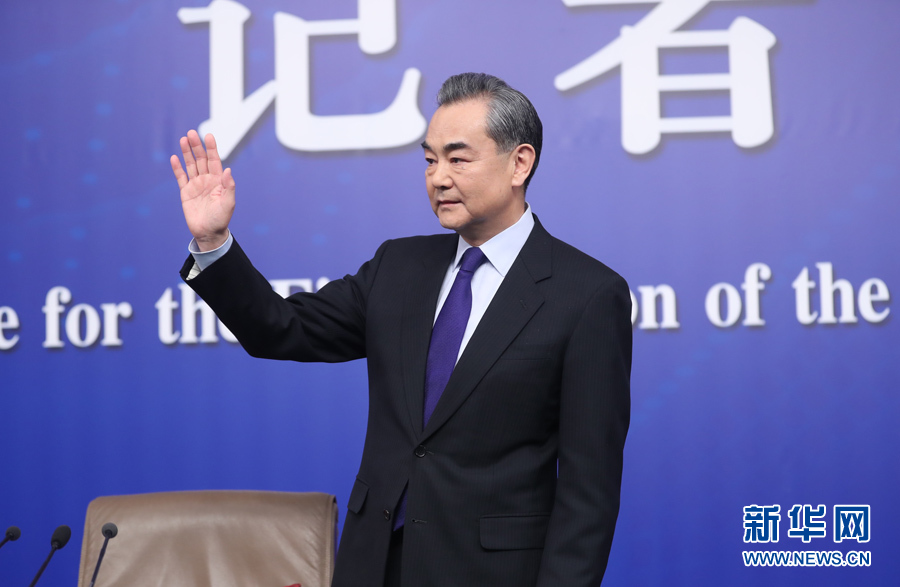 外交部部長王毅在記者會現場