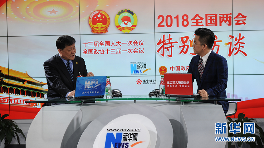 9日,全國政協(xié)委員、遼寧奧克化學(xué)股份有限公司董事長朱建民做客新華網(wǎng)2018全國兩會特別訪談,與網(wǎng)友在線交流。新華網(wǎng) 郭小天攝