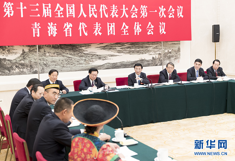 王滬寧在青海代表團(tuán)參加審議。在聽取王國(guó)生、王建軍、張曉容等代表發(fā)言后,王滬寧表示,完全贊成張德江委員長(zhǎng)所作的全國(guó)人大常委會(huì)工作報(bào)告。希望青海深入學(xué)習(xí)貫徹習(xí)近平新時(shí)代中國(guó)特色社會(huì)主義思想和黨的十九大精神,在學(xué)懂弄通做實(shí)上下功夫,引導(dǎo)干部群眾增強(qiáng)“四個(gè)意識(shí)”,堅(jiān)決維護(hù)習(xí)近平總書記核心地位、維護(hù)黨中央權(quán)威和集中統(tǒng)一領(lǐng)導(dǎo)。要聚焦實(shí)現(xiàn)高質(zhì)量發(fā)展,加快傳統(tǒng)產(chǎn)業(yè)優(yōu)化升級(jí),大力發(fā)展特色新興產(chǎn)業(yè),打好生態(tài)保護(hù)、綠色發(fā)展兩張牌,打造青海發(fā)展新的增長(zhǎng)點(diǎn)。要提高保障和改善民生水平,打好精準(zhǔn)脫貧攻堅(jiān)戰(zhàn),做好民族團(tuán)結(jié)進(jìn)步工作,增強(qiáng)各族群眾的獲得感、幸福感、安全感。要認(rèn)真貫徹新時(shí)代黨的建設(shè)總要求,全面加強(qiáng)黨的領(lǐng)導(dǎo)和黨的建設(shè)。