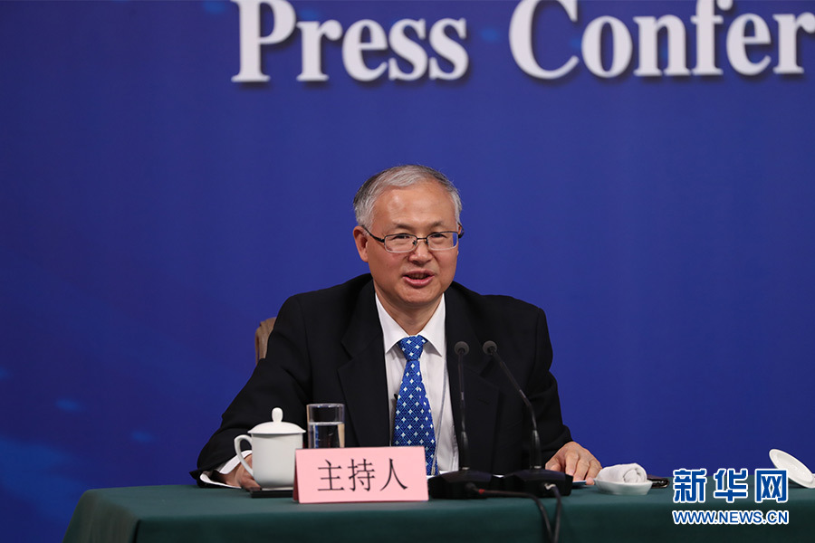 3月12日,十三屆全國人大一次會議新聞中心在梅地亞中心多功能廳舉行記者會,邀請十二屆全國人大內(nèi)司委副主任委員王勝明、財經(jīng)委副主任委員烏日圖、教科文衛(wèi)委副主任委員吳恒、環(huán)資委委員呂彩霞,全國人大常委會法工委副主任王超英、副主任許安標(biāo)就“人大立法工作”相關(guān)問題回答中外記者提問。圖為記者會主持人。新華網(wǎng)/中國政府網(wǎng) 翟子赫 攝