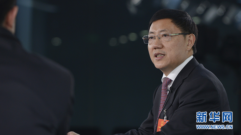 3月17日,全國(guó)人大代表,四川省巴中市委副書(shū)記、市長(zhǎng)何平(右)做客新華網(wǎng)2018全國(guó)兩會(huì)特別訪(fǎng)談。新華網(wǎng) 李相博攝
