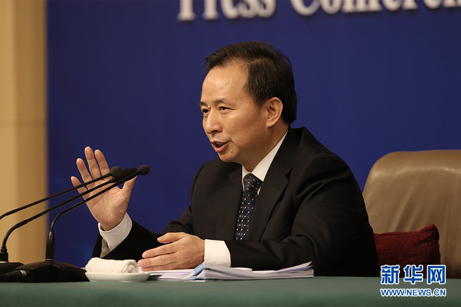 十三屆全國人大一次會議新聞中心3月17日(星期六)15時在梅地亞中心多功能廳舉行記者會,邀請環保部部長李干杰就“打好污染防治攻堅戰”相關問題回答中外記者提問。圖為環保部部長李干杰回答記者提問。新華網/中國政府網 陳杰 攝