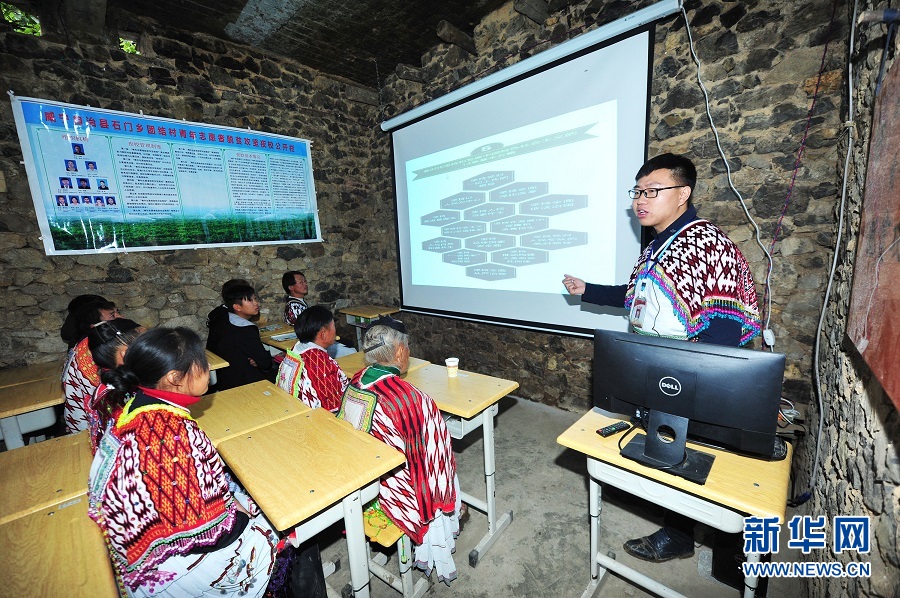 在貴州省畢節(jié)市威寧彝族回族苗族自治縣石門鄉(xiāng)團(tuán)結(jié)村七里沖組脫貧攻堅(jiān)講習(xí)點(diǎn),村支書胡鈞溥在向當(dāng)?shù)厝罕娭v解十九大精神及相關(guān)的扶貧政策(2017年10月23日攝)。逐夢征程,需要價(jià)值追求的引領(lǐng)和精神力量的支撐。 “社會(huì)主義核心價(jià)值觀決定著各民族共有精神家園的發(fā)展方向,必須在各民族中大力培育和踐行”“以社會(huì)主義核心價(jià)值觀為引領(lǐng),深入挖掘優(yōu)秀傳統(tǒng)農(nóng)耕文化蘊(yùn)含的思想觀念、人文精神、道德規(guī)范”“引導(dǎo)全社會(huì)積極培育和踐行社會(huì)主義核心價(jià)值觀,樹立良好道德風(fēng)尚”……今年全國兩會(huì)期間,習(xí)近平總書記多次強(qiáng)調(diào)培育和踐行社會(huì)主義核心價(jià)值觀。兩會(huì)上,社會(huì)主義核心價(jià)值觀被寫入國家根本大法。浩渺行無極,揚(yáng)帆但信風(fēng)。兩會(huì)結(jié)束后,代表委員們奔赴大江南北,與各地干部群眾一起,以實(shí)際行動(dòng)推動(dòng)社會(huì)主義核心價(jià)值觀建設(shè)落細(xì)落小落實(shí),持續(xù)構(gòu)筑中國精神、中國價(jià)值、中國力量,為劈波斬浪的“中國號”巨輪揚(yáng)起團(tuán)結(jié)奮進(jìn)的精神風(fēng)帆。新華社記者 陶亮 攝
