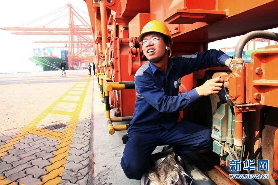 馮鴻昌在檢修港口設(shè)備(2007年12月7日攝)。從業(yè)21年,馮鴻昌從一名普通學(xué)徒起步,一步步成長為廈門集裝箱碼頭集團(tuán)有限公司高級技師、全國勞動(dòng)模范,榮獲中華技能大獎(jiǎng)。他的微信頭像里,“匠人匠心”四個(gè)字分外顯眼。逐夢征程,需要價(jià)值追求的引領(lǐng)和精神力量的支撐。新華社記者 姜克紅 攝