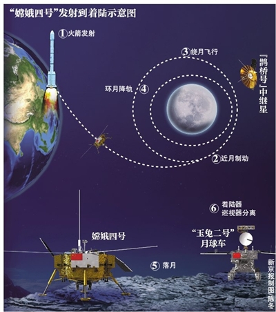 嫦娥四號(hào)去年12月8日搭乘火箭發(fā)射,12月12日進(jìn)入環(huán)月軌道,12月30日進(jìn)入月球背面著陸準(zhǔn)備軌道。12月12日后,嫦娥四號(hào)進(jìn)行了2次環(huán)月軌道修正,與“鵲橋號(hào)”中繼星進(jìn)行了4次中繼鏈路測(cè)試,開(kāi)展激光測(cè)距、三維成像等導(dǎo)航敏感器在軌測(cè)試。