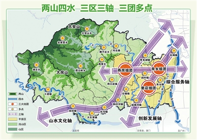 記者發現,分區規劃主要聚焦戰略定位、發展目標、規模結構、空間布局、規劃統籌落實以及產業、生態、文化等內容。