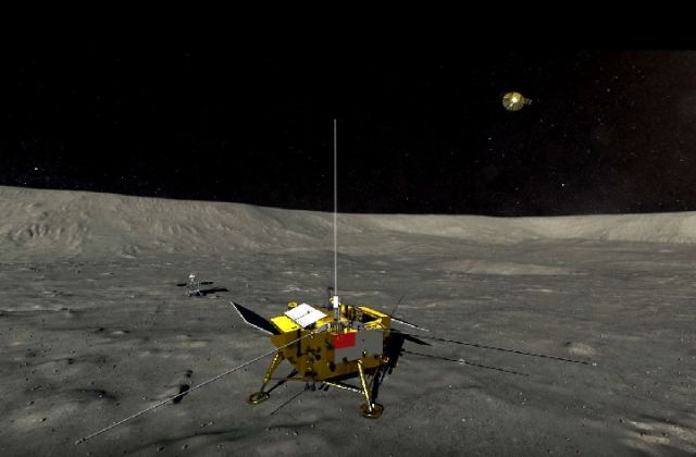 嫦娥四號、玉兔二號、鵲橋號全家福。(中國航天科技集團五院供圖)