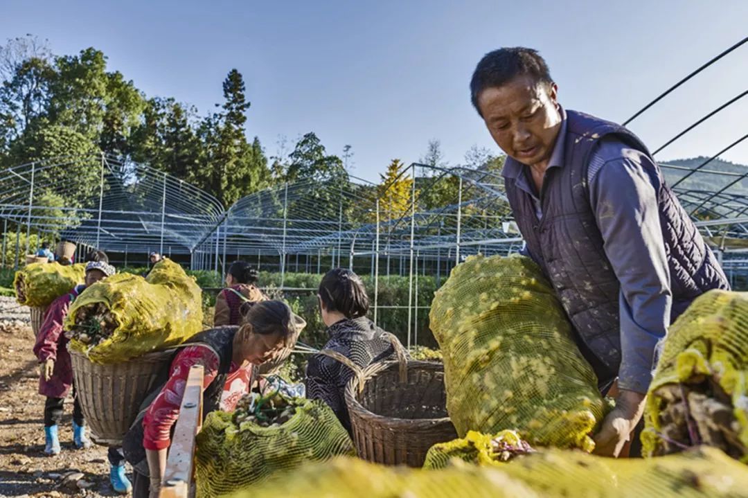 2018-11-17,湖北來(lái)鳳。 生姜是來(lái)鳳縣土特產(chǎn),農(nóng)民正在把生姜裝車(chē)。作者:楊秀國(guó)