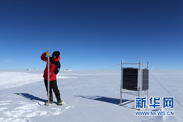 1月5日,科考隊(duì)員楊元德用GPS進(jìn)行冰流速測(cè)量。新華社記者 劉詩(shī)平 攝