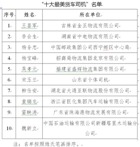 經活動組委會審核、專家初評、公開展示、網絡投票、專家終選等程序,最終推選出丁志健等96名個人為“最美貨車司機”,王喜軍等10名個人為“十大最美貨車司機”,浙江省交通運輸廳等12家單位為組織貢獻單位。