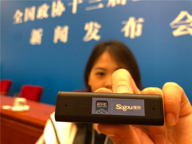 ↑3月3日,新華社記者在兩會(huì)報(bào)道中使用智能錄音筆。