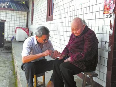 4月11日上午,在內江市東興區高梁鎮楊嶺村一戶農房里,73歲的村民陳應全正拿著梳子嫻熟地為96歲的母親梳頭。梳完頭,陳應全又拿出蘋果,削皮后分成小塊喂給母親吃。