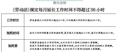 中國財政科學研究院應用經濟學博士后盤和林對北青報記者表示,按照勞動法相關規(guī)定,在保障勞動者身體健康的條件下,延長工作時間每日不得超過3小時,每月不得超過36小時。在員工存在超時加班的情況下,即使是員工樂意自愿的,企業(yè)仍然會存在一定的用工風險,包括勞動監(jiān)察檢查的風險、被通報批評和被罰款的風險、被舉報的風險及仲裁和訴訟的風險。本組文/本報記者 溫婧 圖片源自網絡