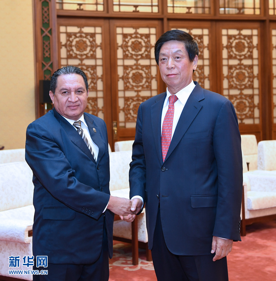 4月15日,全國人大常委會委員長栗戰書在北京人民大會堂會見薩爾瓦多國民議會第一副議長奧蘭特斯。 新華社記者 饒愛民 攝