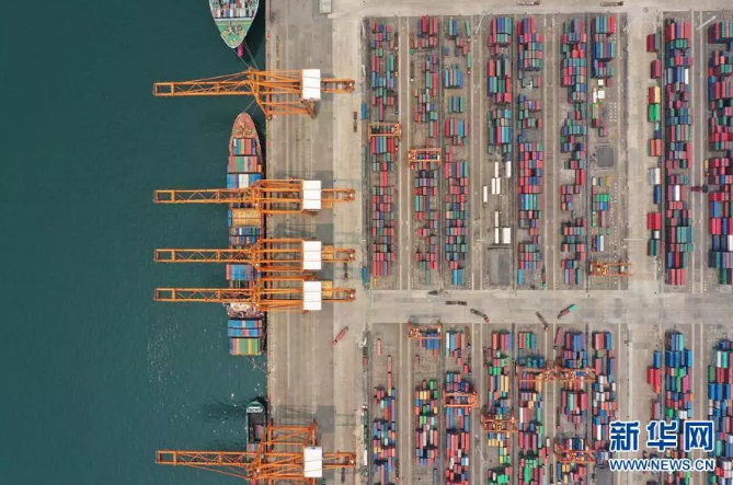 圖為廣西欽州保稅港區(qū)碼頭(無(wú)人機(jī)拍攝)。新華社記者 曹祎銘 攝