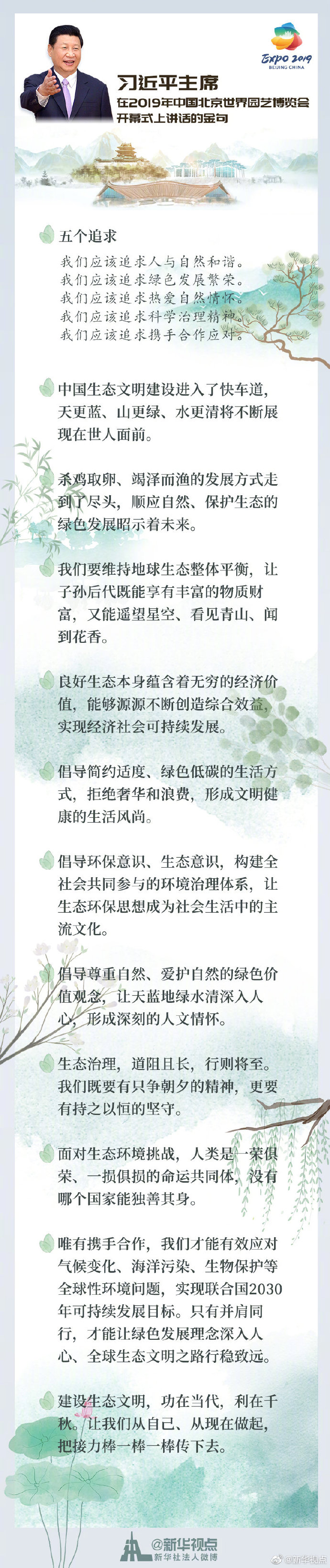 習(xí)近平主席28日出席2019年中國北京世界園藝博覽會(huì)開幕式并發(fā)表講話,傳遞的綠色發(fā)展理念直抵人心。詳情請(qǐng)戳圖看金句↓ ????