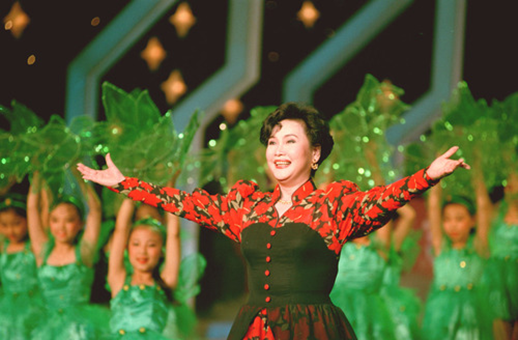 著名歌唱家李谷一在演唱《我和我的祖國》。新華社記者鞠鵬攝 (1996年7月3日發(fā))