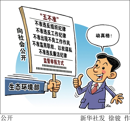 新華社北京5月16日電(記者高敬)記者從生態(tài)環(huán)境部獲悉,此前曾有環(huán)境執(zhí)法人員在專項(xiàng)督查或檢查期間,發(fā)生違反廉潔紀(jì)律的問題。為嚴(yán)明紀(jì)律,中央紀(jì)委國(guó)家監(jiān)委駐生態(tài)環(huán)境部紀(jì)檢監(jiān)察組5月16日發(fā)布公告,向社會(huì)公開了生態(tài)環(huán)境部污染防治攻堅(jiān)戰(zhàn)強(qiáng)化監(jiān)督工作“五不準(zhǔn)”,并公布紀(jì)律作風(fēng)監(jiān)督舉報(bào)方式。