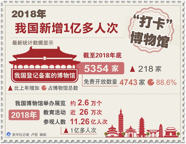 新華社長沙5月18日電(記者施雨岑、柳王敏)最新統(tǒng)計數(shù)據(jù)顯示,2018年,我國博物館舉辦展覽約2.6萬個,教育活動近26萬次,參觀人數(shù)達11.26億人次,比上年增加1億多人次。