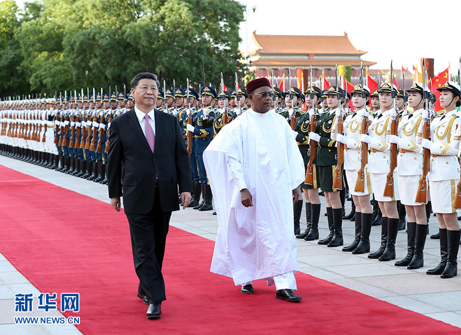 5月28日,國(guó)家主席習(xí)近平在北京人民大會(huì)堂同尼日爾總統(tǒng)伊素福舉行會(huì)談。這是會(huì)談前,習(xí)近平在人民大會(huì)堂東門外廣場(chǎng)為伊素福舉行歡迎儀式。 新華社記者 劉衛(wèi)兵 攝