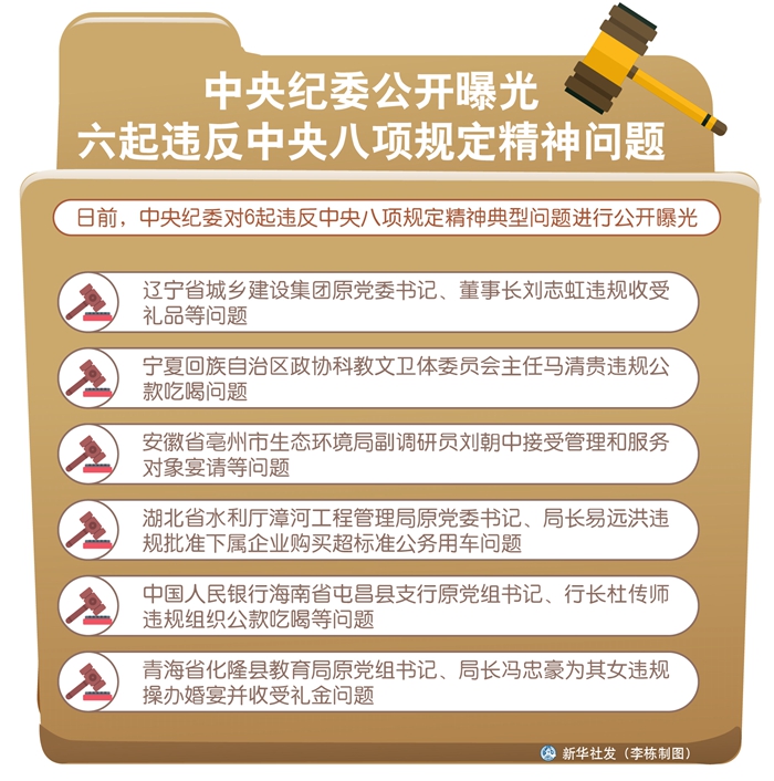 新華社北京6月3日電 日前,中央紀(jì)委對(duì)6起違反中央八項(xiàng)規(guī)定精神典型問(wèn)題進(jìn)行公開(kāi)曝光。這6起典型問(wèn)題是: