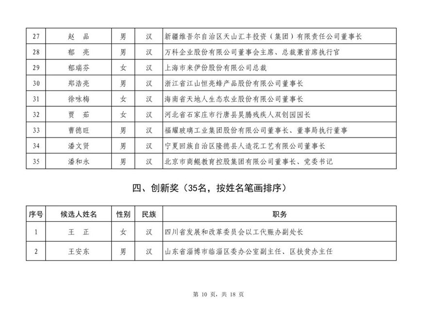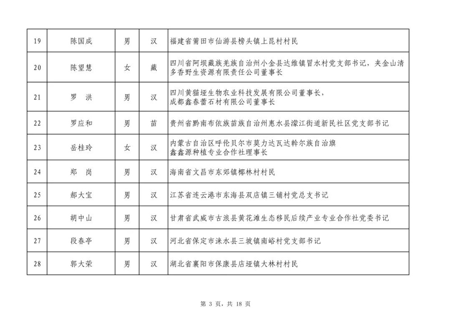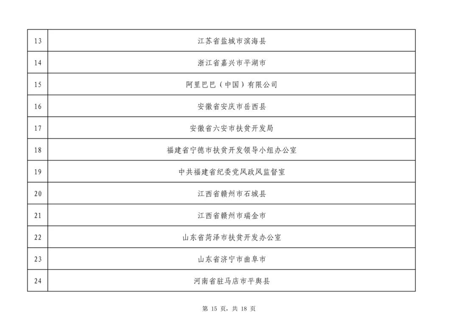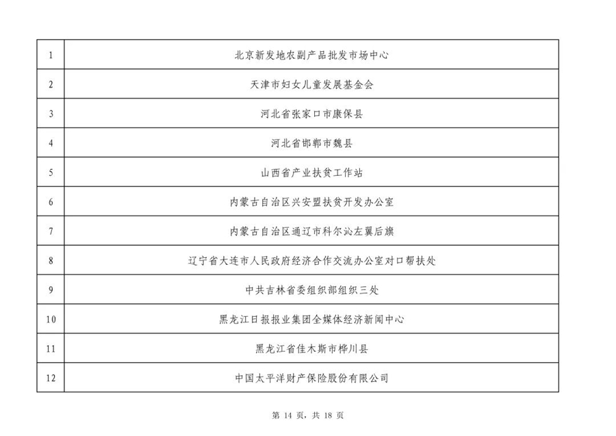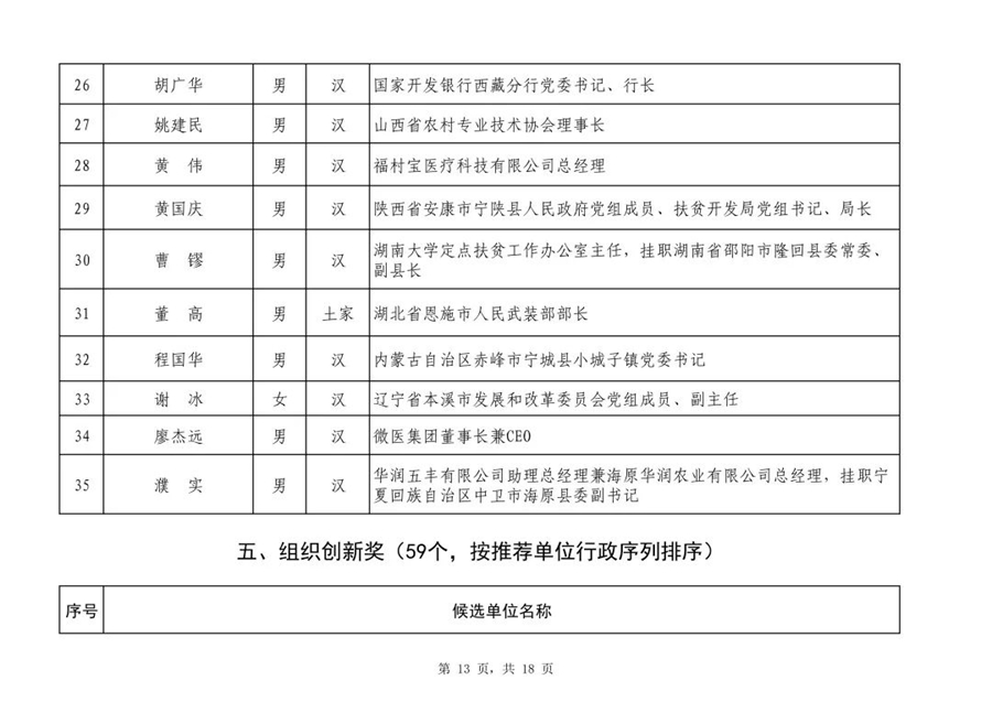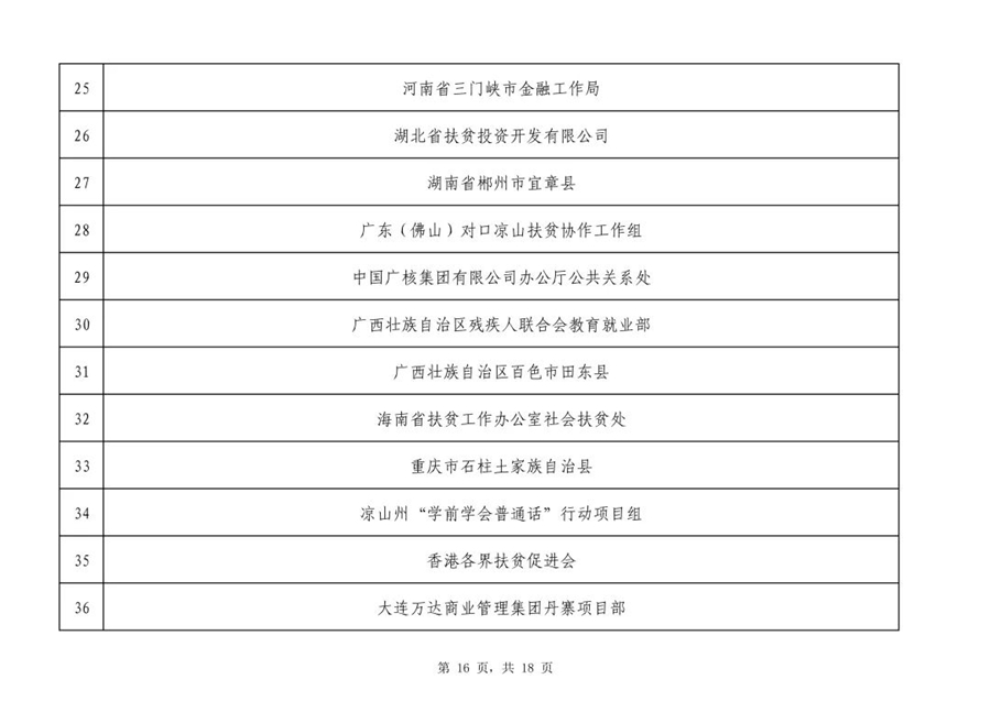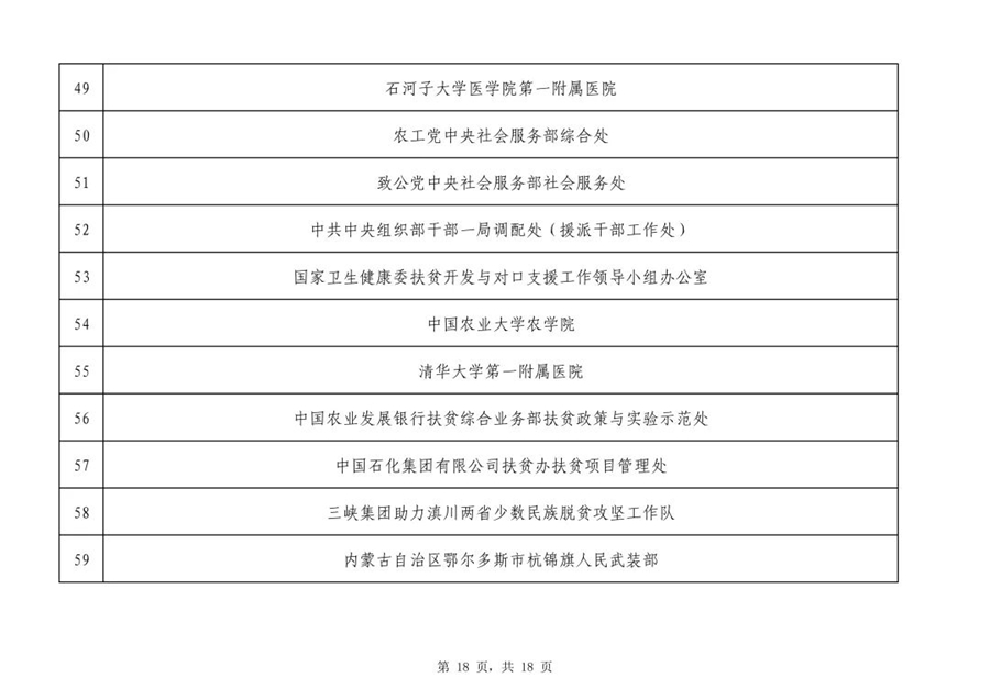 2019年全國脫貧攻堅(jiān)獎初評候選人(單位)