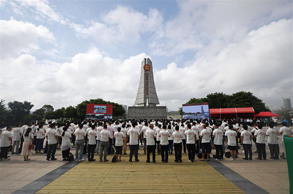 6月11日,“記者再走長征路”主題采訪活動啟動儀式在江西于都舉行。新華社記者 周密 攝